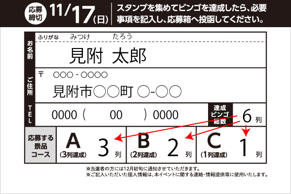 (※もちろんビンゴ1列達成でもご応募可能です。)