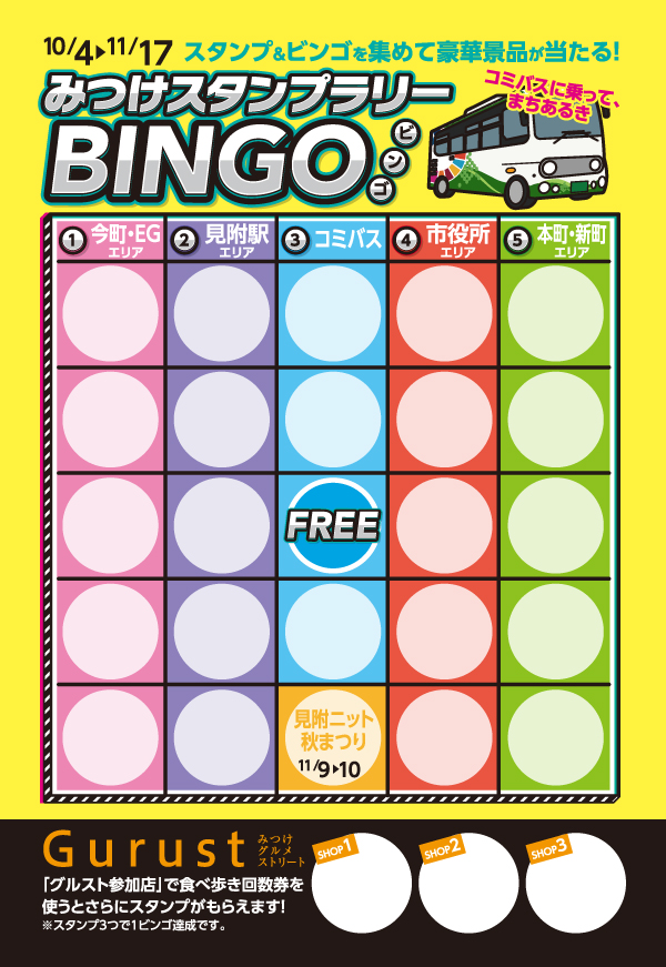 11/9(土)・10(日)のみ、ネーブルみつけ・Primera(プリメーラ)店内でスタンプ(シール)がもらえます。